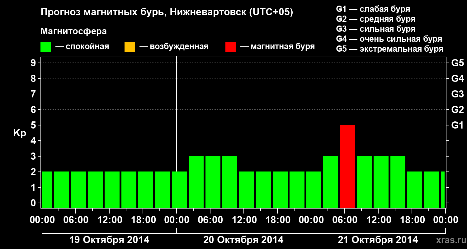 Прогноз магнитных бурь в Нижневартовске на 19 октября 2014 года