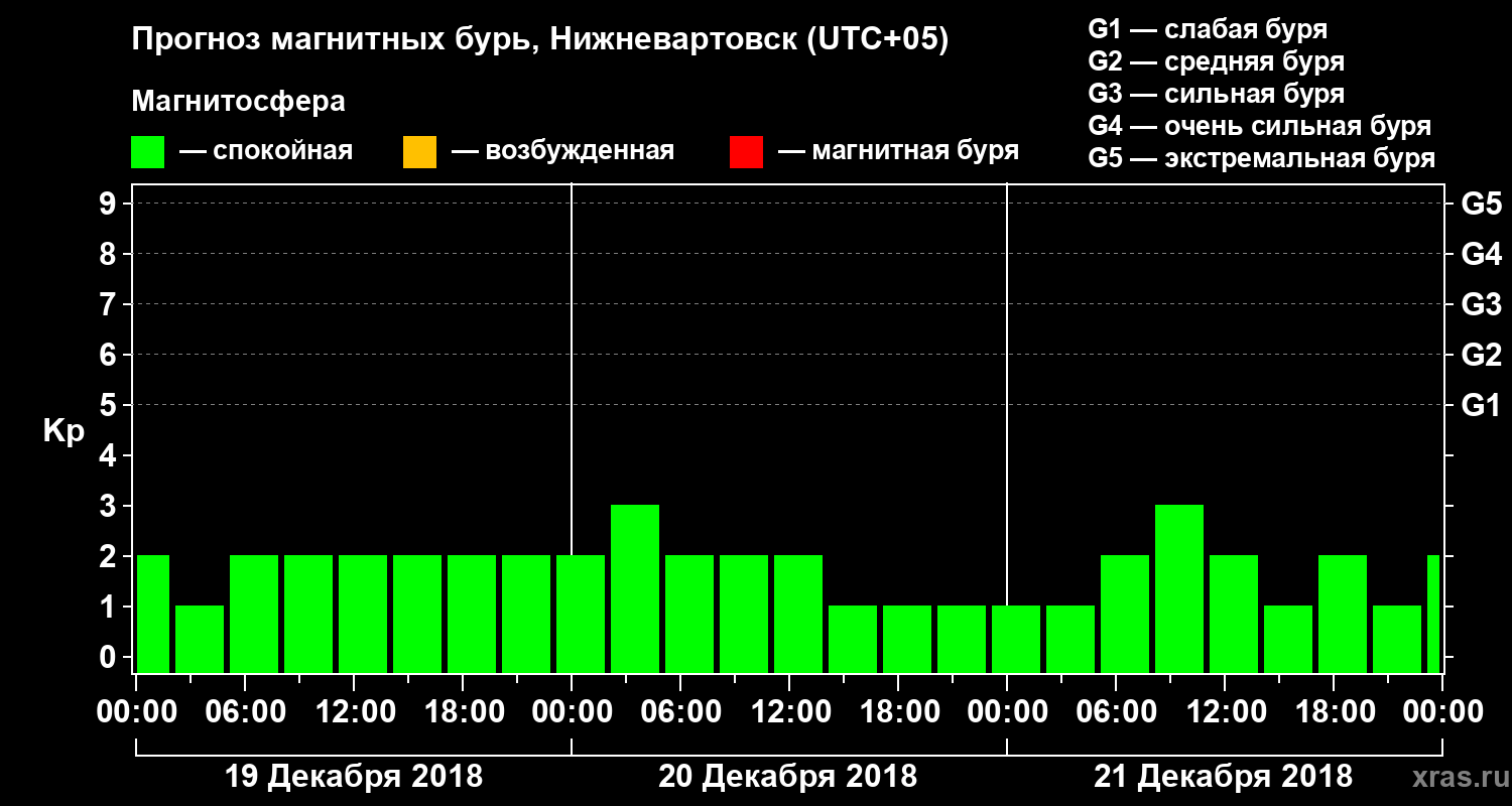 Прогноз магнитных бурь в Нижневартовске на 19 декабря 2018 года