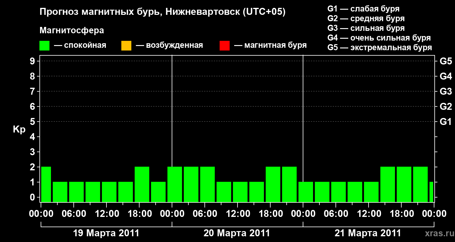 Прогноз магнитных бурь в Нижневартовске — 19 марта 2011 года