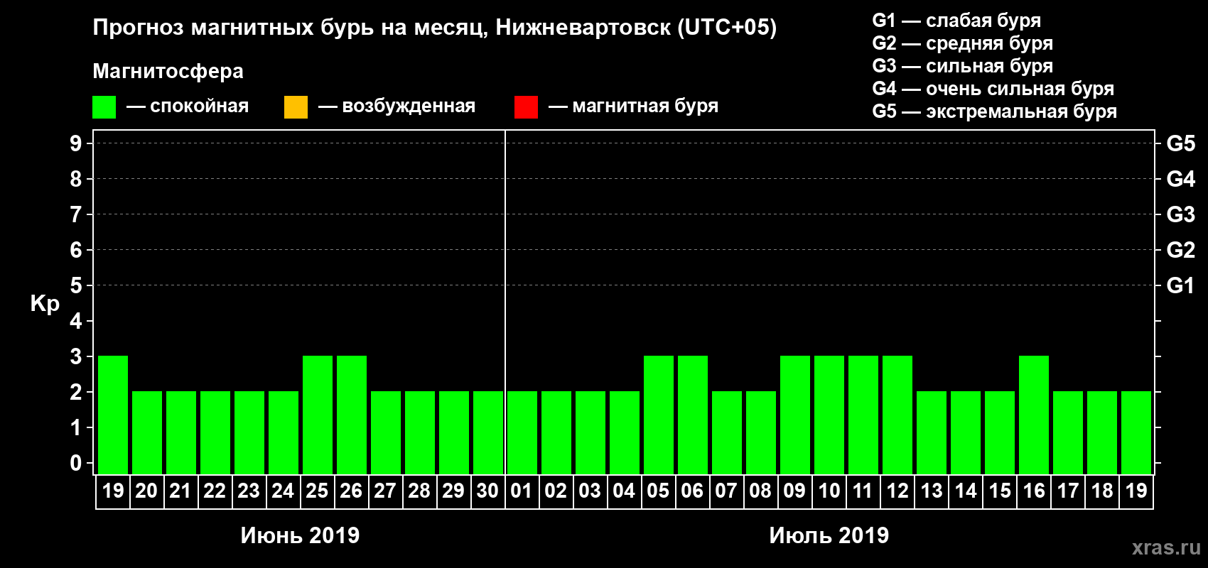 Прогноз магнитных бурь в Нижневартовске — 19 июня 2019 года