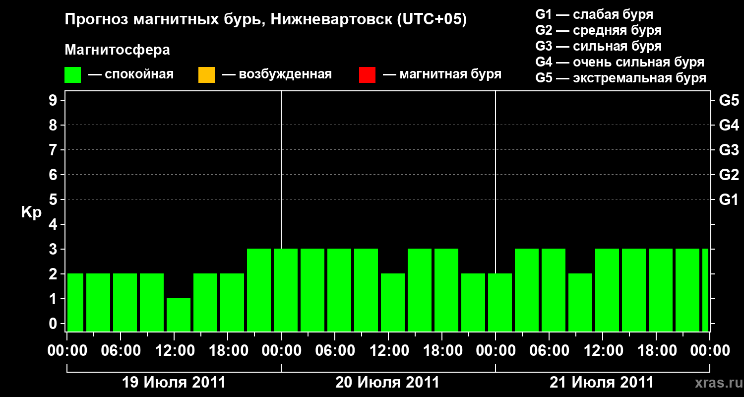 Прогноз магнитных бурь в Нижневартовске на 19 июля 2011 года