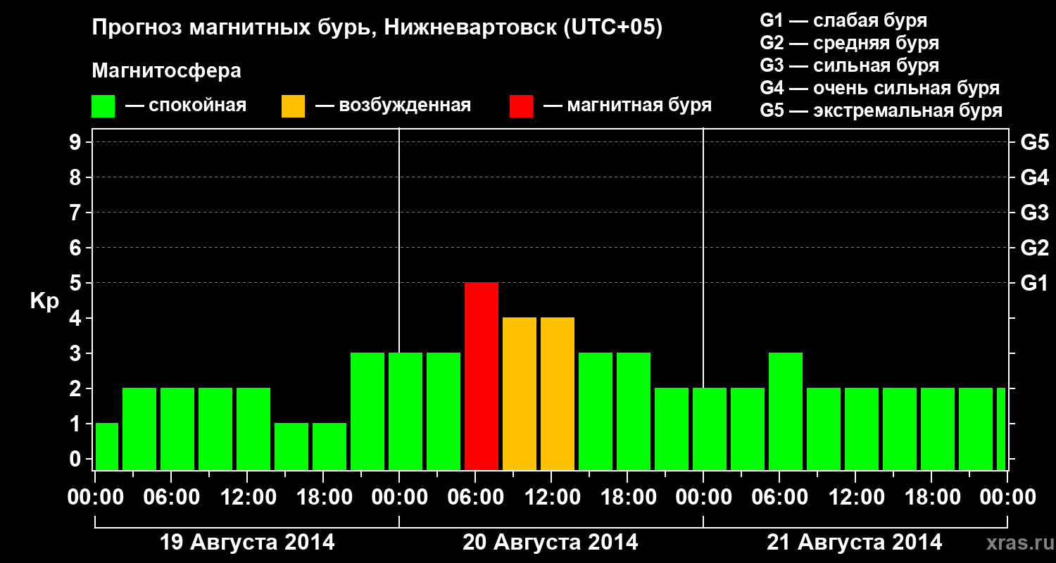 Прогноз магнитных бурь в Нижневартовске — 19 августа 2014 года