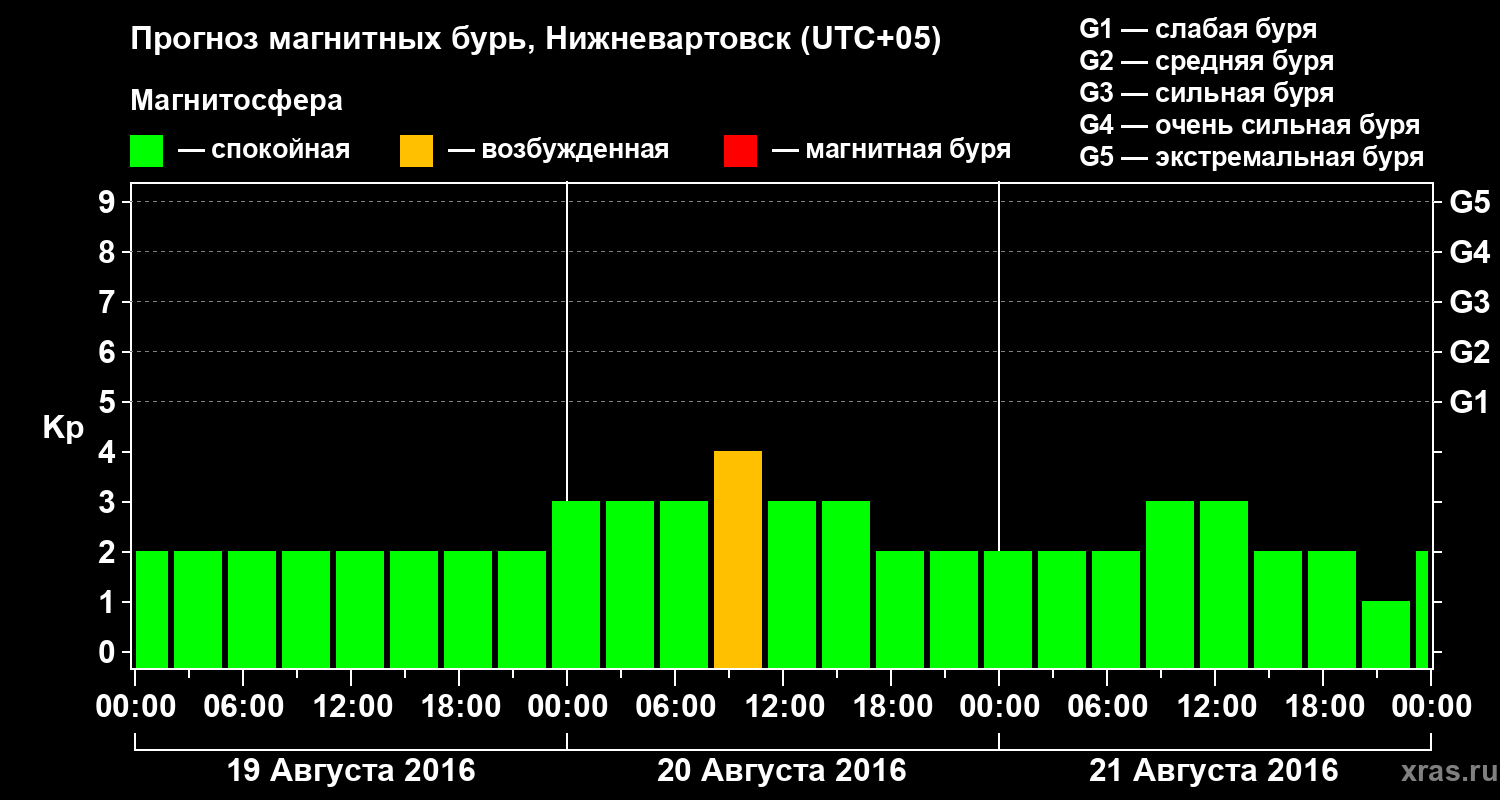 Прогноз магнитных бурь в Нижневартовске — 19 августа 2016 года