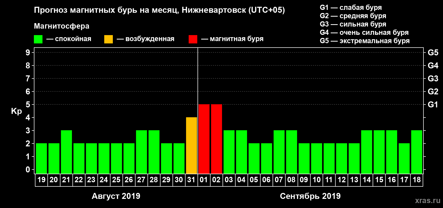 Прогноз магнитных бурь в Нижневартовске — 19 августа 2019 года