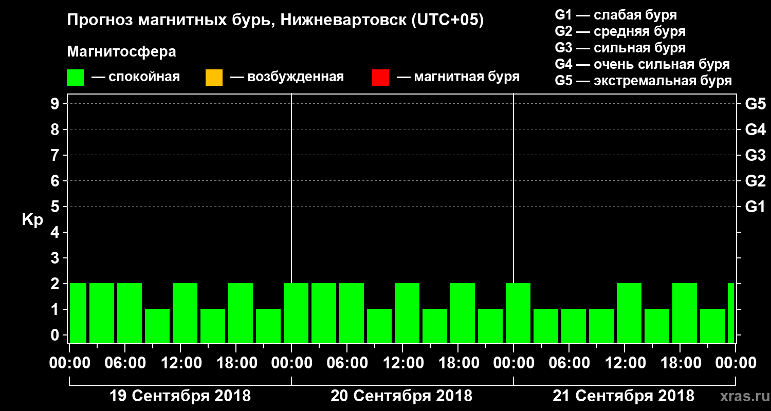 Прогноз магнитных бурь в Нижневартовске на 19 сентября 2018 года