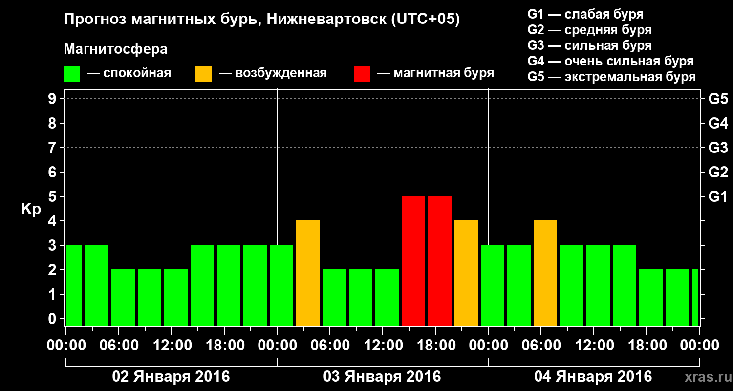 Прогноз магнитных бурь в Нижневартовске — 2 января 2016 года
