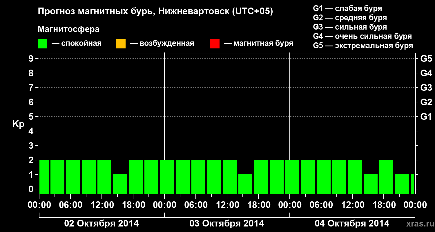 Прогноз магнитных бурь в Нижневартовске на 2 октября 2014 года