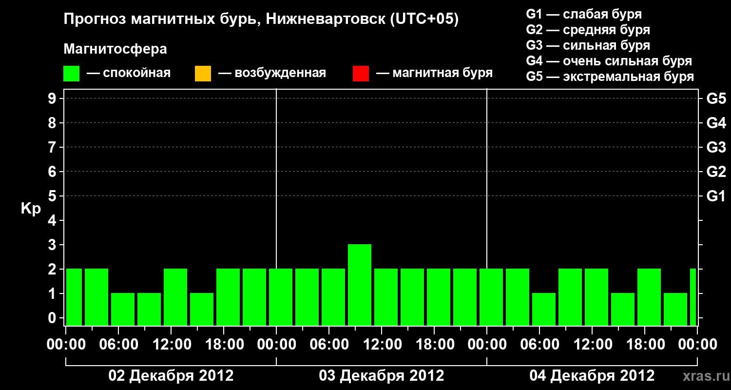 Прогноз магнитных бурь в Нижневартовске — 2 декабря 2012 года
