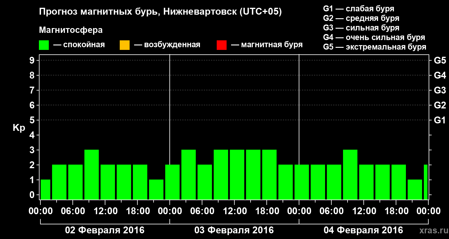 Прогноз магнитных бурь в Нижневартовске на 2 февраля 2016 года