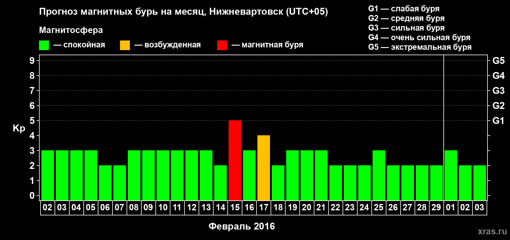 Прогноз магнитных бурь в Нижневартовске — 2 февраля 2016 года
