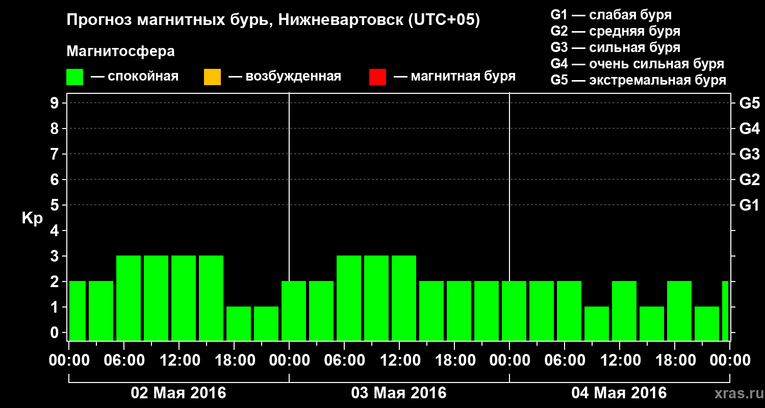 Прогноз магнитных бурь в Нижневартовске — 2 мая 2016 года