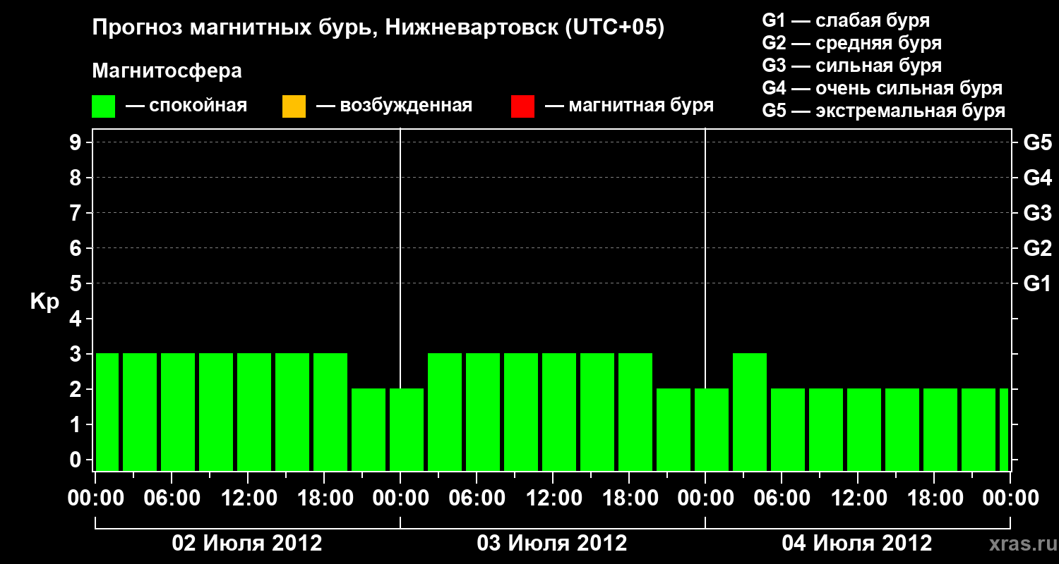 Прогноз магнитных бурь в Нижневартовске — 2 июля 2012 года