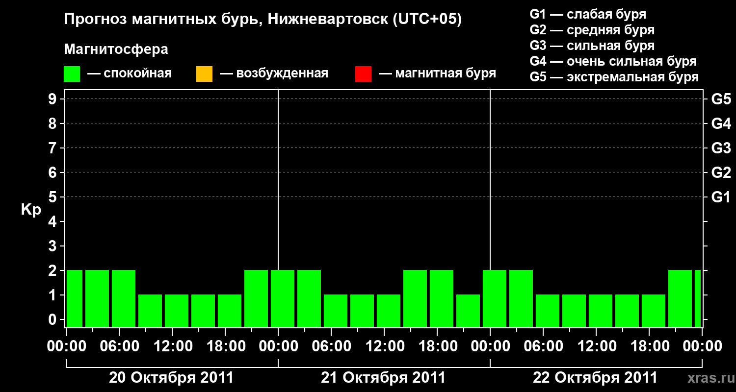 Прогноз магнитных бурь в Нижневартовске — 20 октября 2011 года