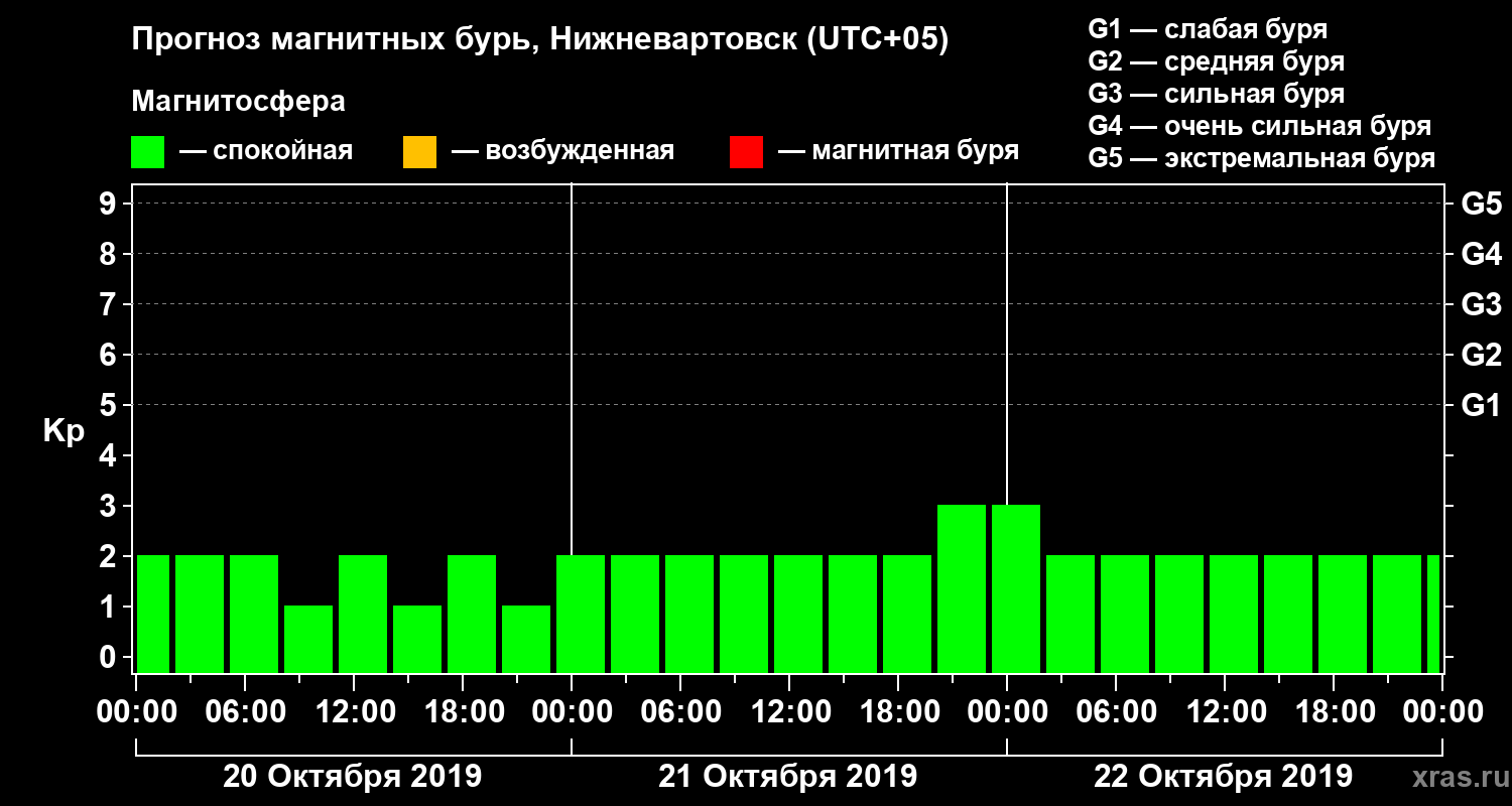Прогноз магнитных бурь в Нижневартовске — 20 октября 2019 года