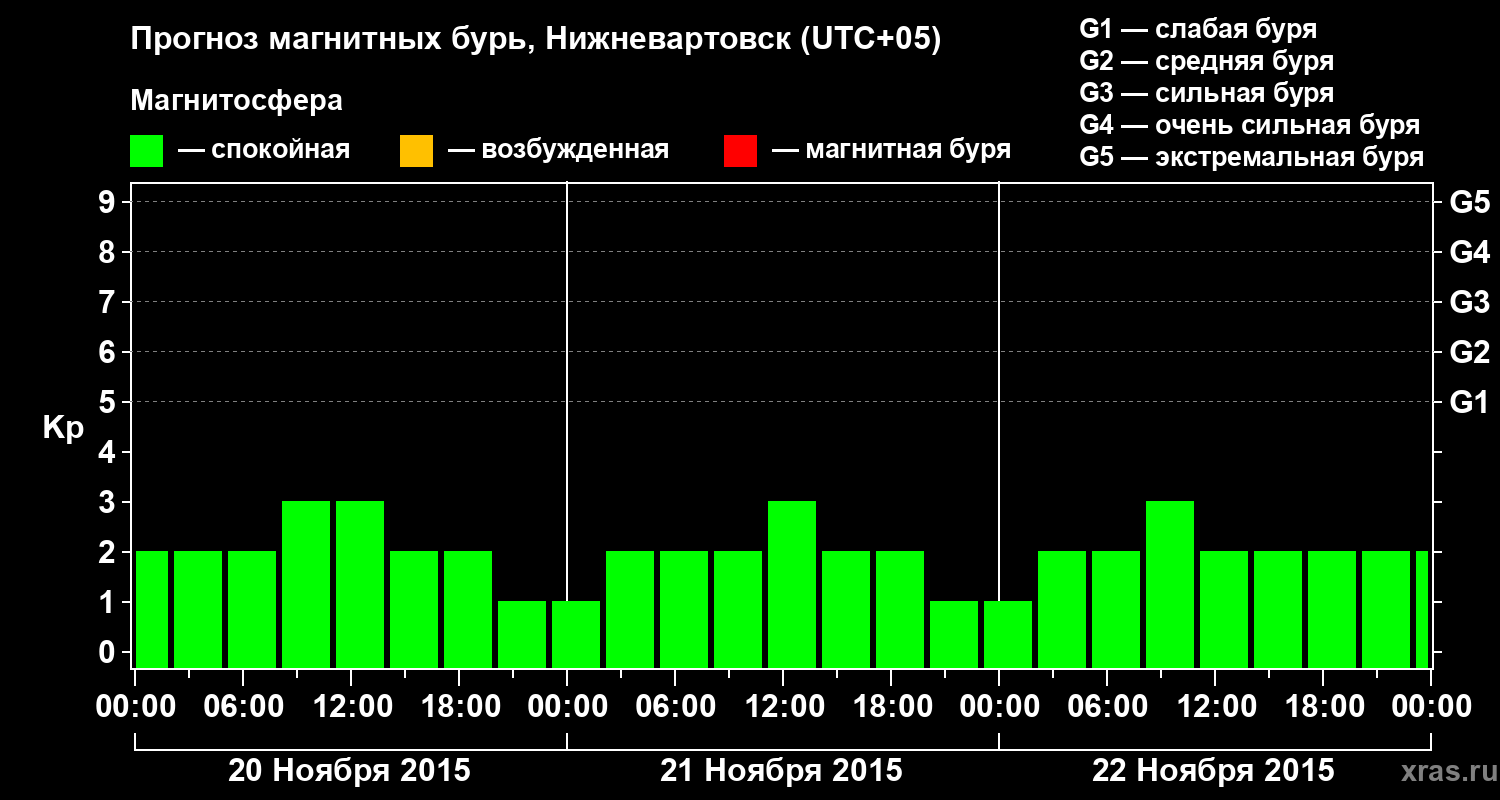 Прогноз магнитных бурь в Нижневартовске — 20 ноября 2015 года