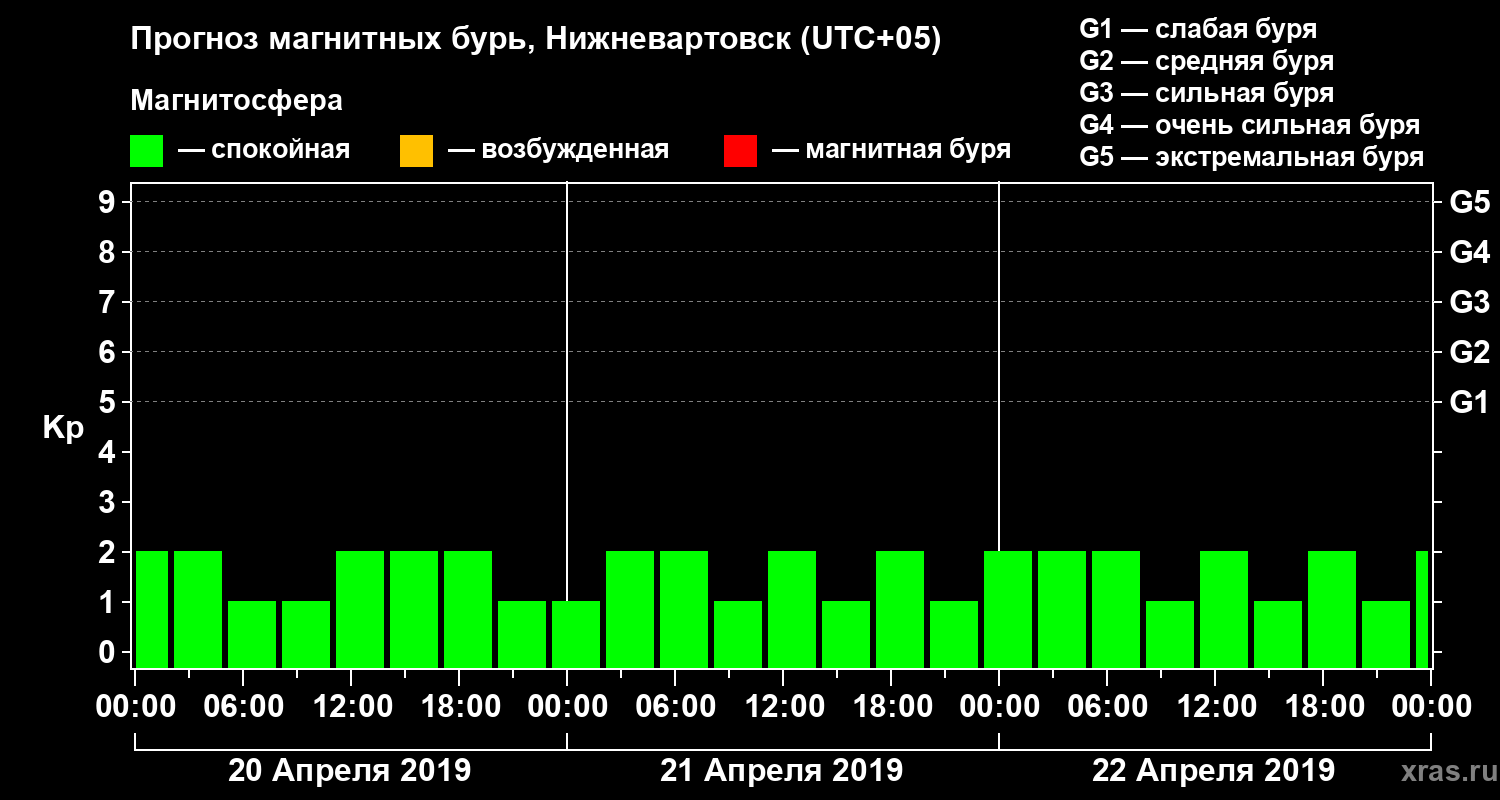 Прогноз магнитных бурь в Нижневартовске на 20 апреля 2019 года