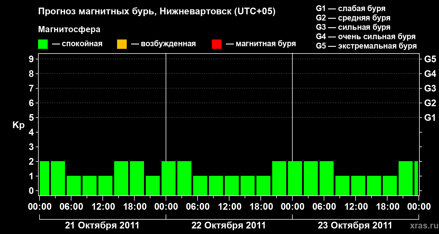 Прогноз магнитных бурь в Нижневартовске — 21 октября 2011 года