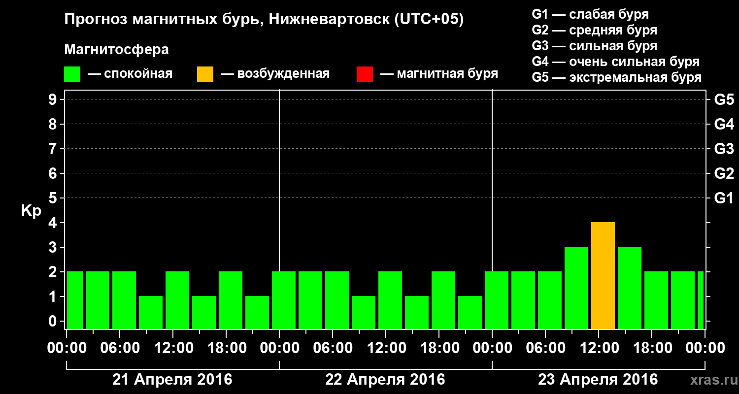 Прогноз магнитных бурь в Нижневартовске — 21 апреля 2016 года