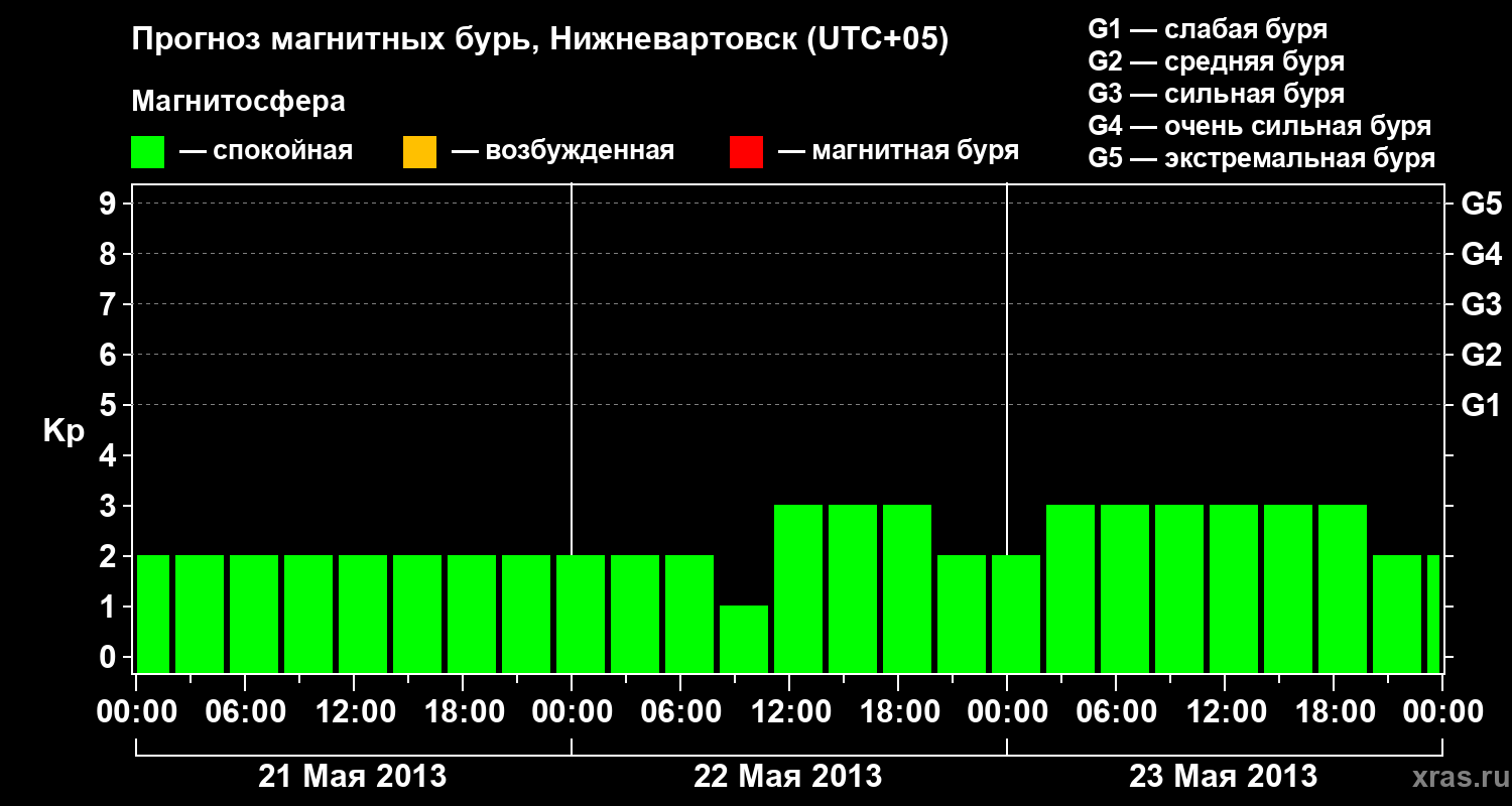 Прогноз магнитных бурь в Нижневартовске — 21 мая 2013 года