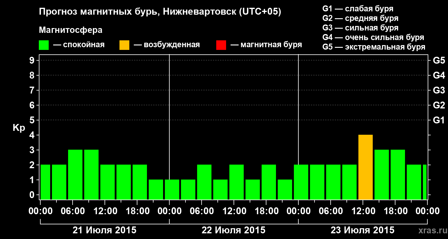 Прогноз магнитных бурь в Нижневартовске — 21 июля 2015 года