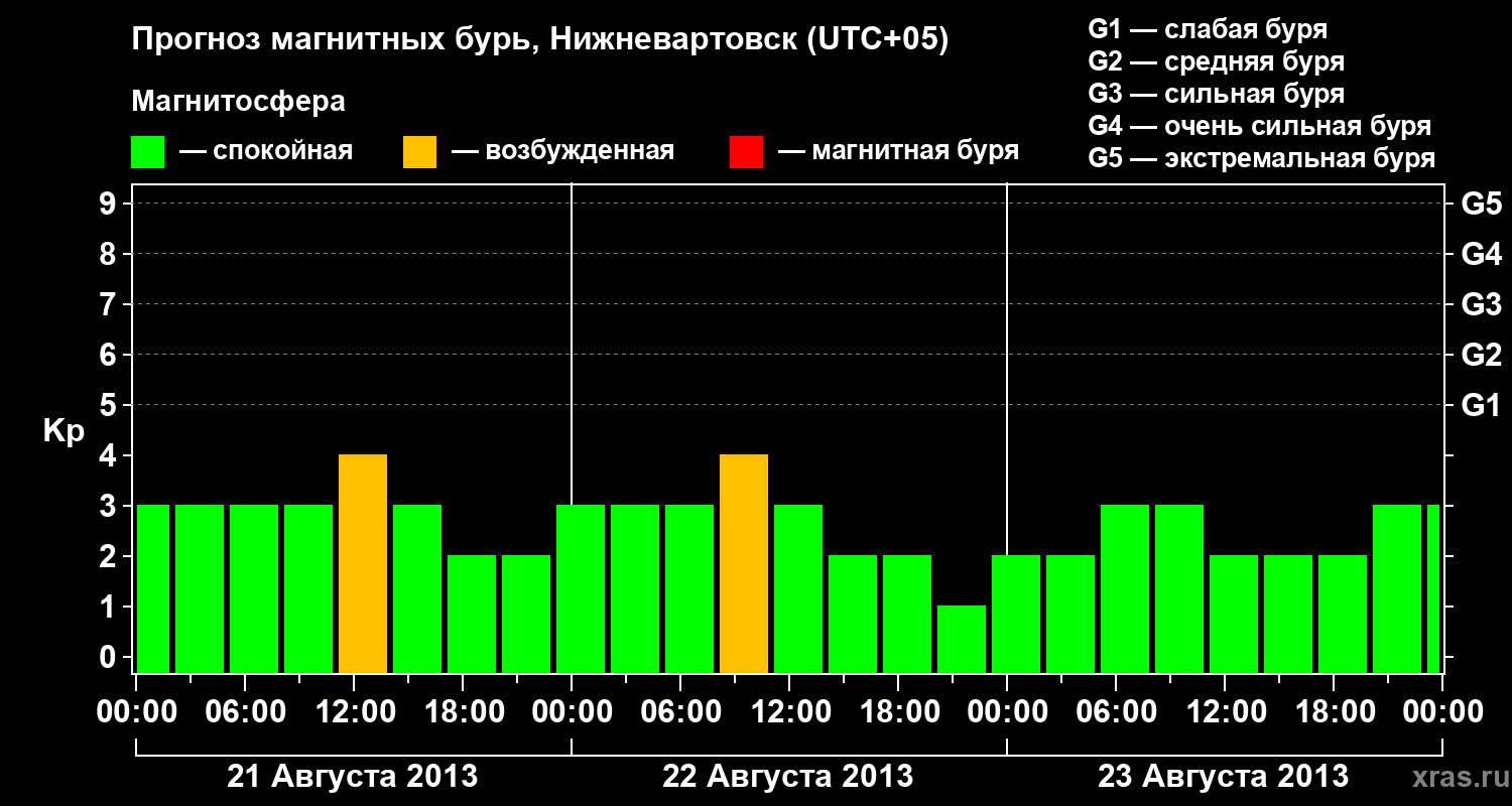 Прогноз магнитных бурь в Нижневартовске — 21 августа 2013 года
