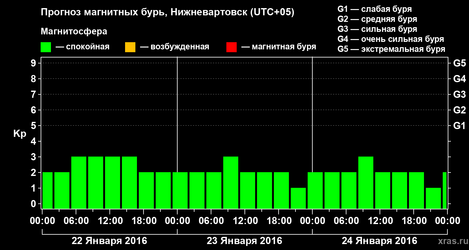Прогноз магнитных бурь в Нижневартовске — 22 января 2016 года