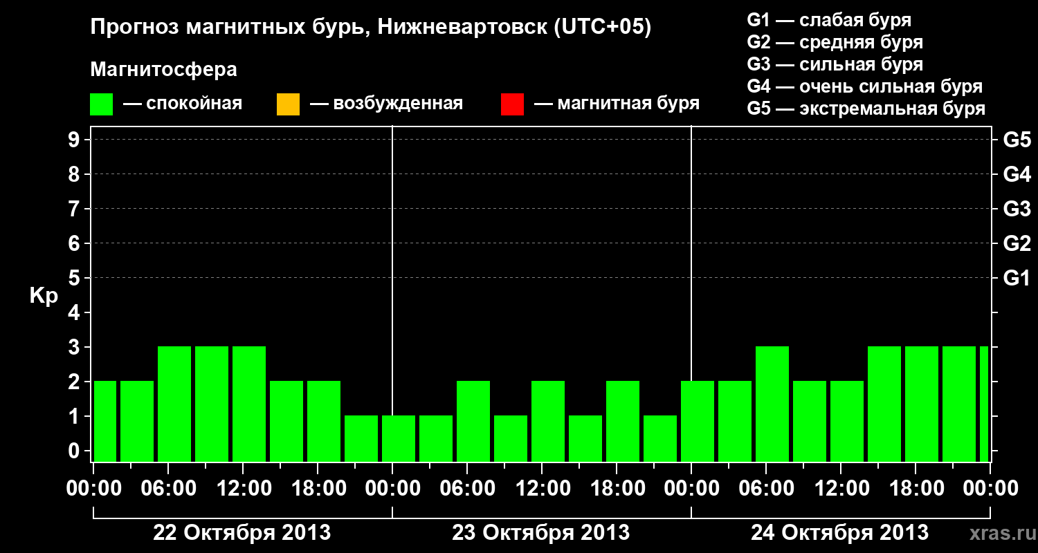 Прогноз магнитных бурь в Нижневартовске — 22 октября 2013 года