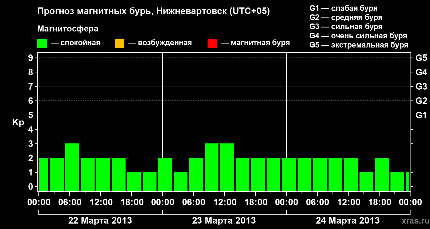 Прогноз магнитных бурь в Нижневартовске — 22 марта 2013 года