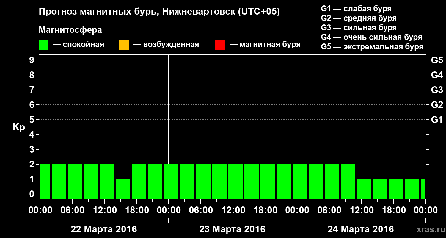 Прогноз магнитных бурь в Нижневартовске — 22 марта 2016 года