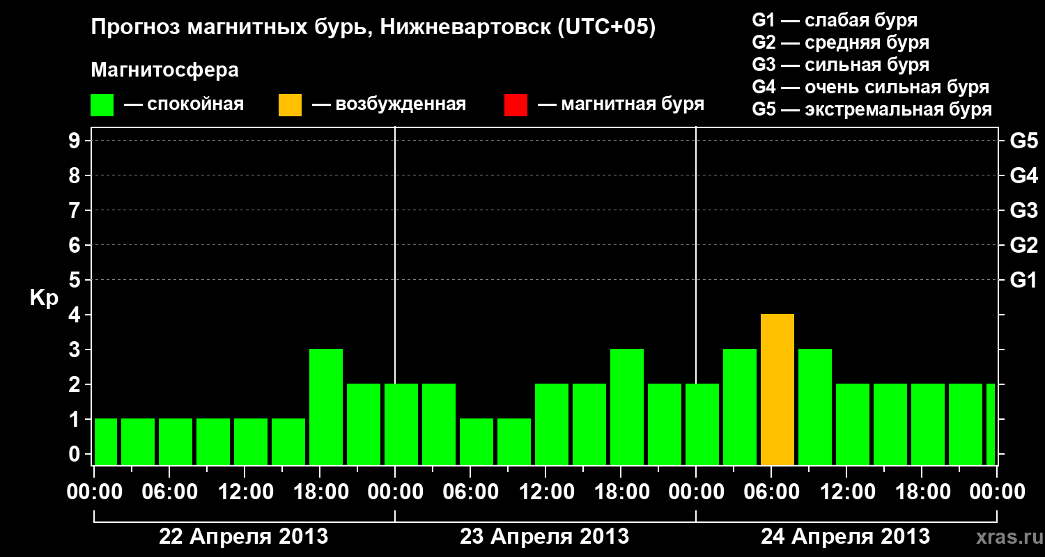 Прогноз магнитных бурь в Нижневартовске — 22 апреля 2013 года