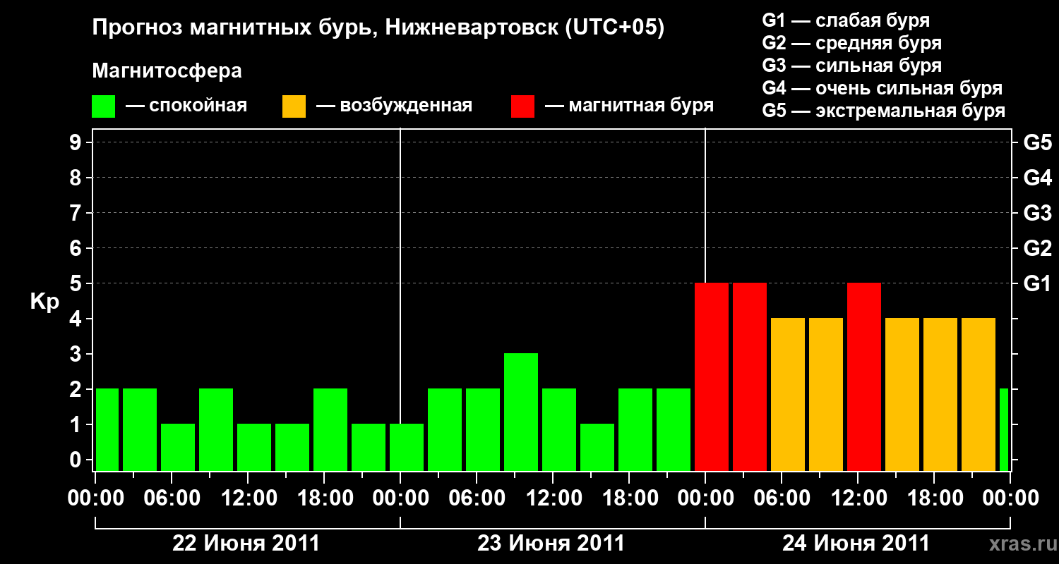 Прогноз магнитных бурь в Нижневартовске — 22 июня 2011 года