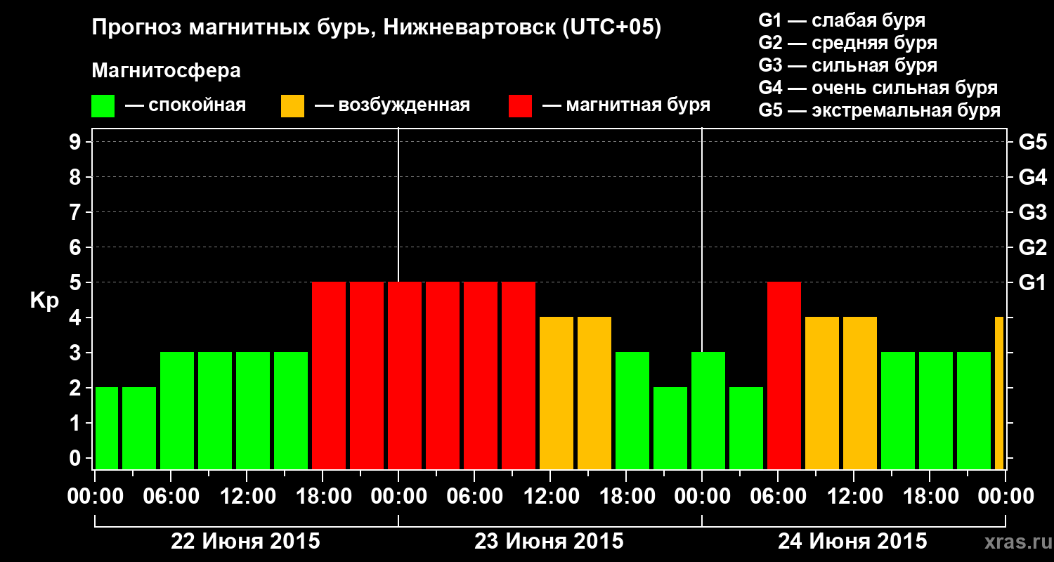 Прогноз магнитных бурь в Нижневартовске — 22 июня 2015 года