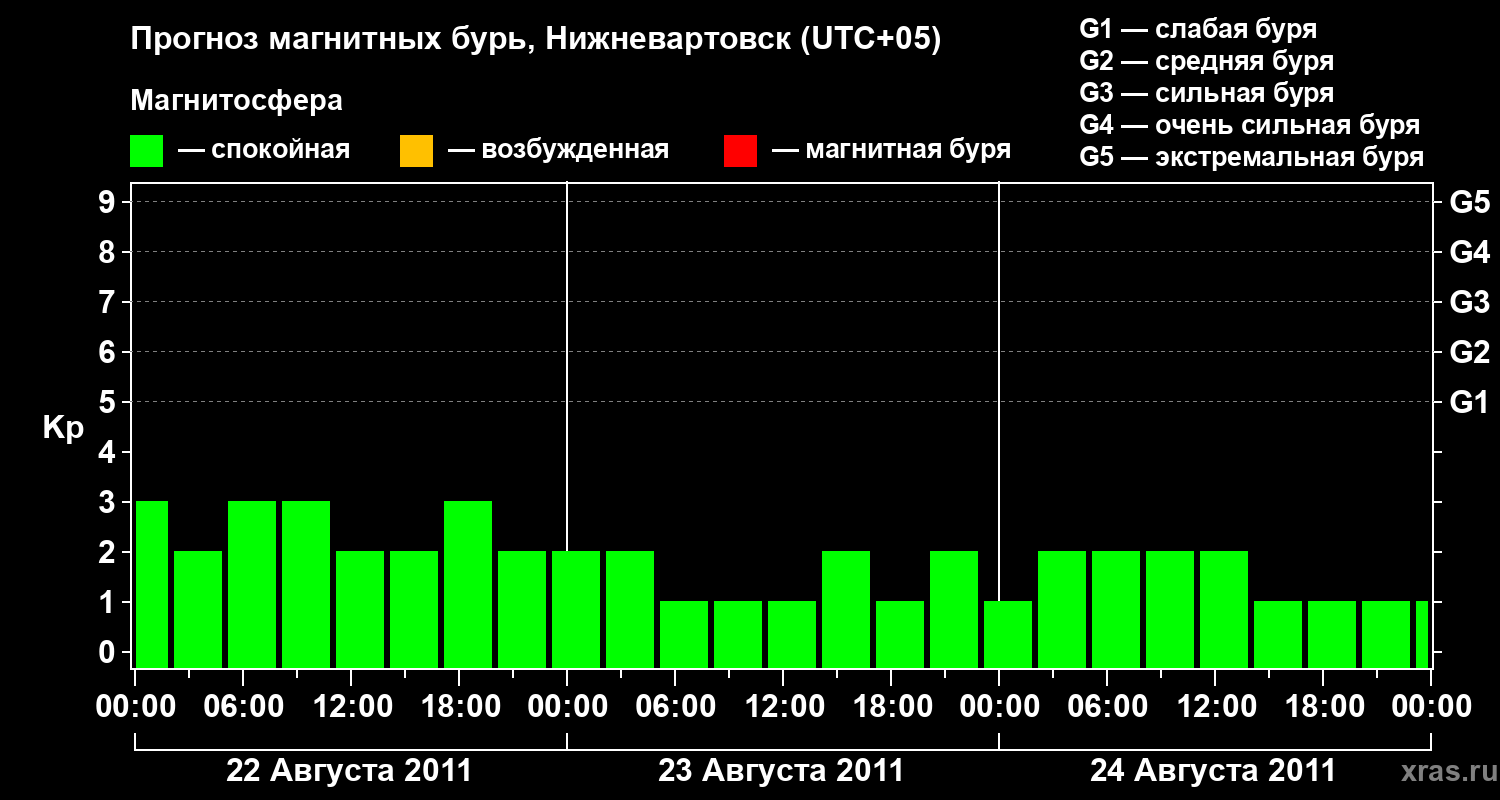 Прогноз магнитных бурь в Нижневартовске — 22 августа 2011 года