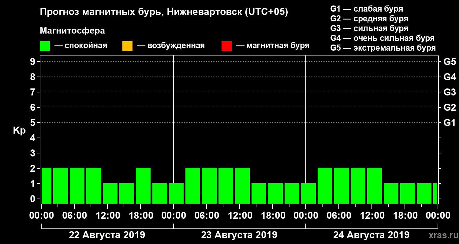 Прогноз магнитных бурь в Нижневартовске — 22 августа 2019 года