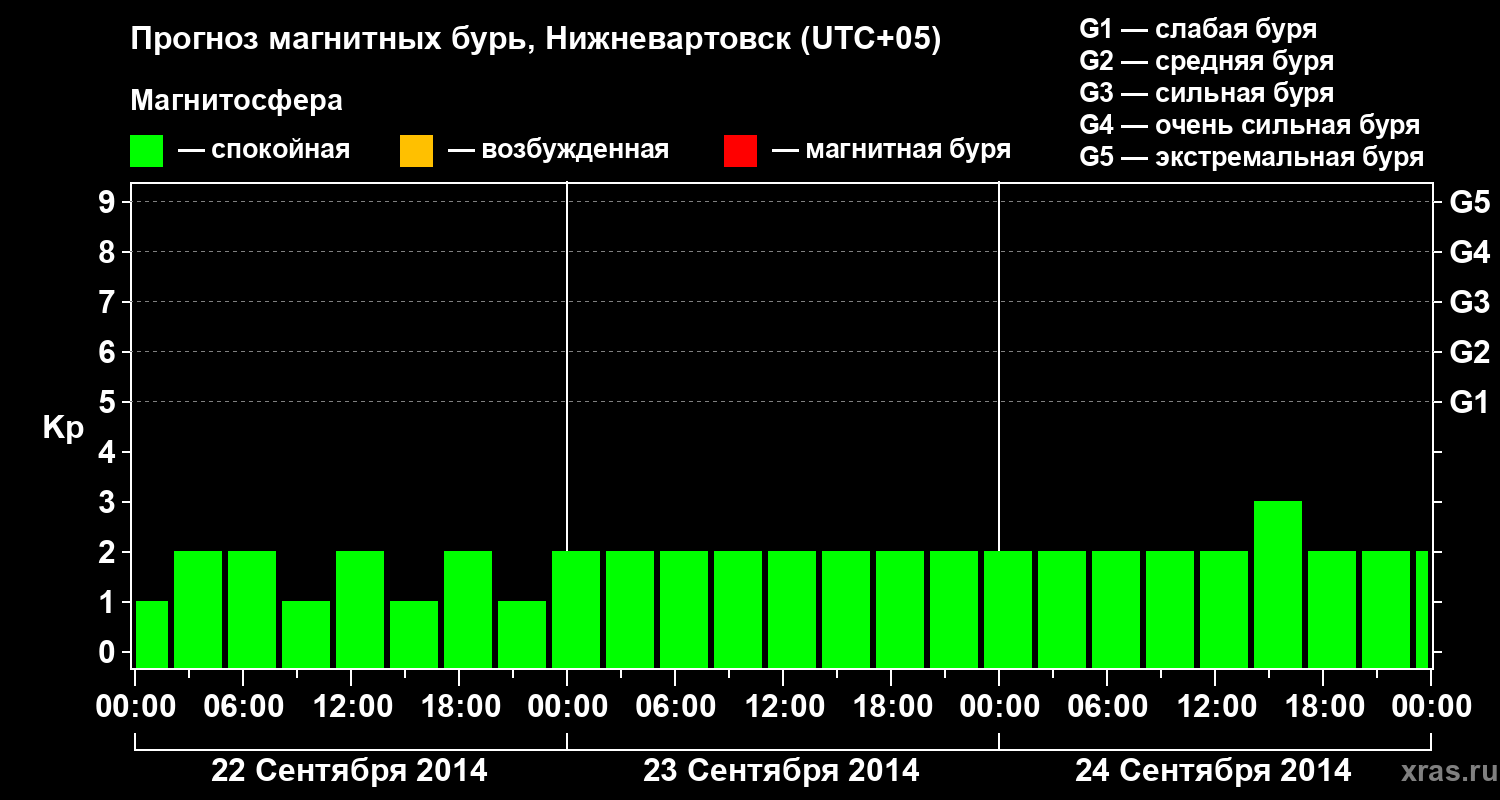 Прогноз магнитных бурь в Нижневартовске — 22 сентября 2014 года