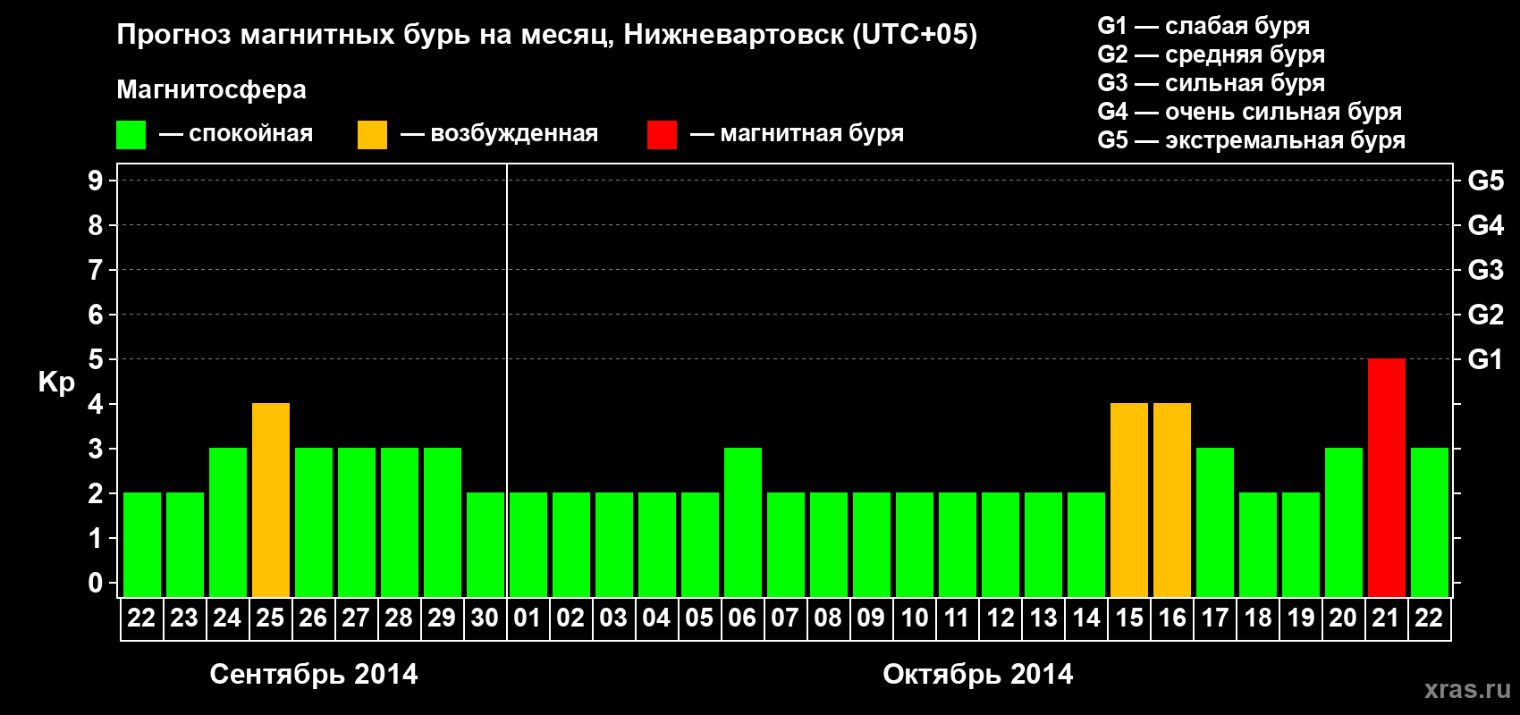 Прогноз магнитных бурь в Нижневартовске на 22 сентября 2014 года