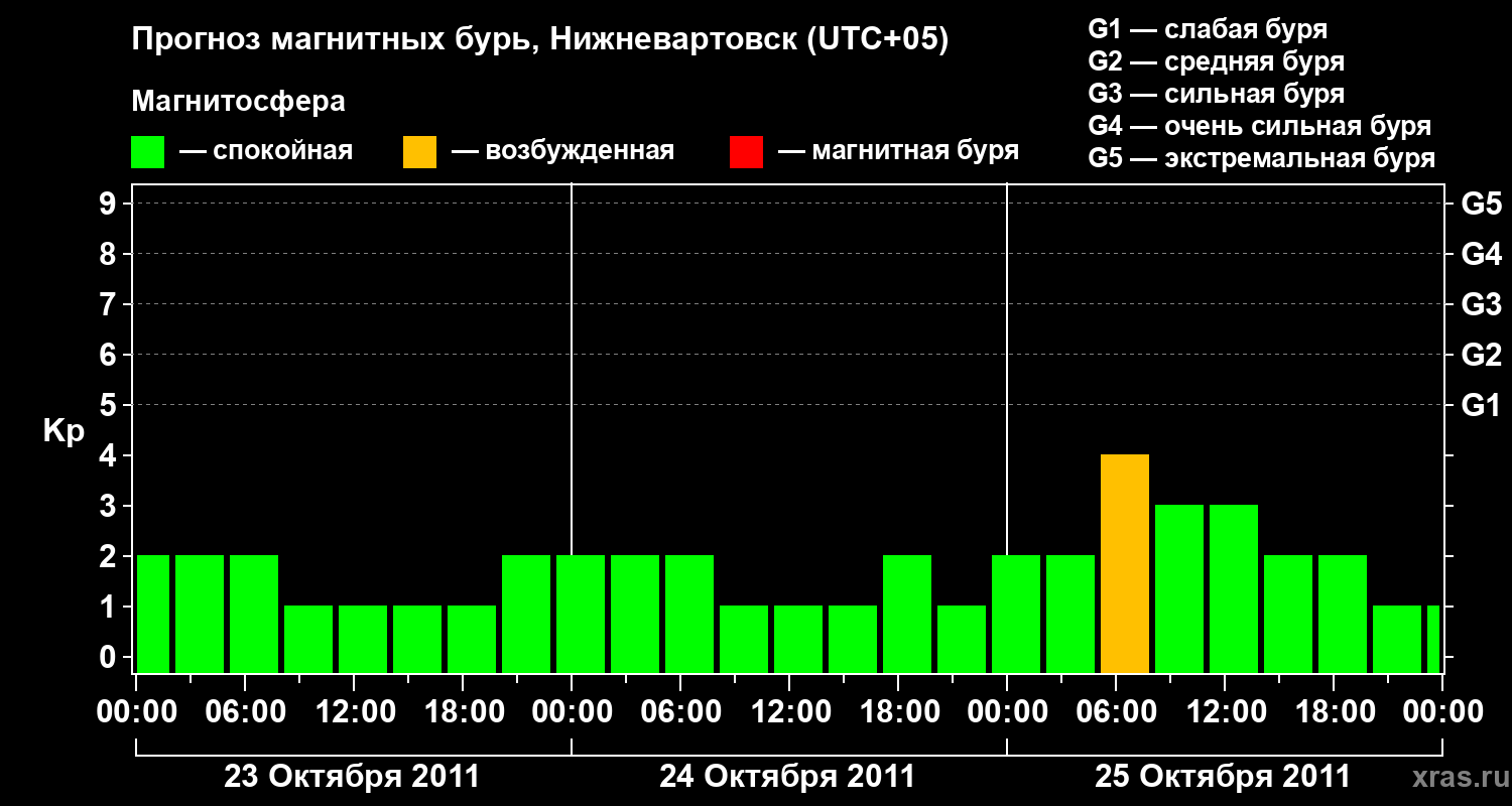 Прогноз магнитных бурь в Нижневартовске — 23 октября 2011 года