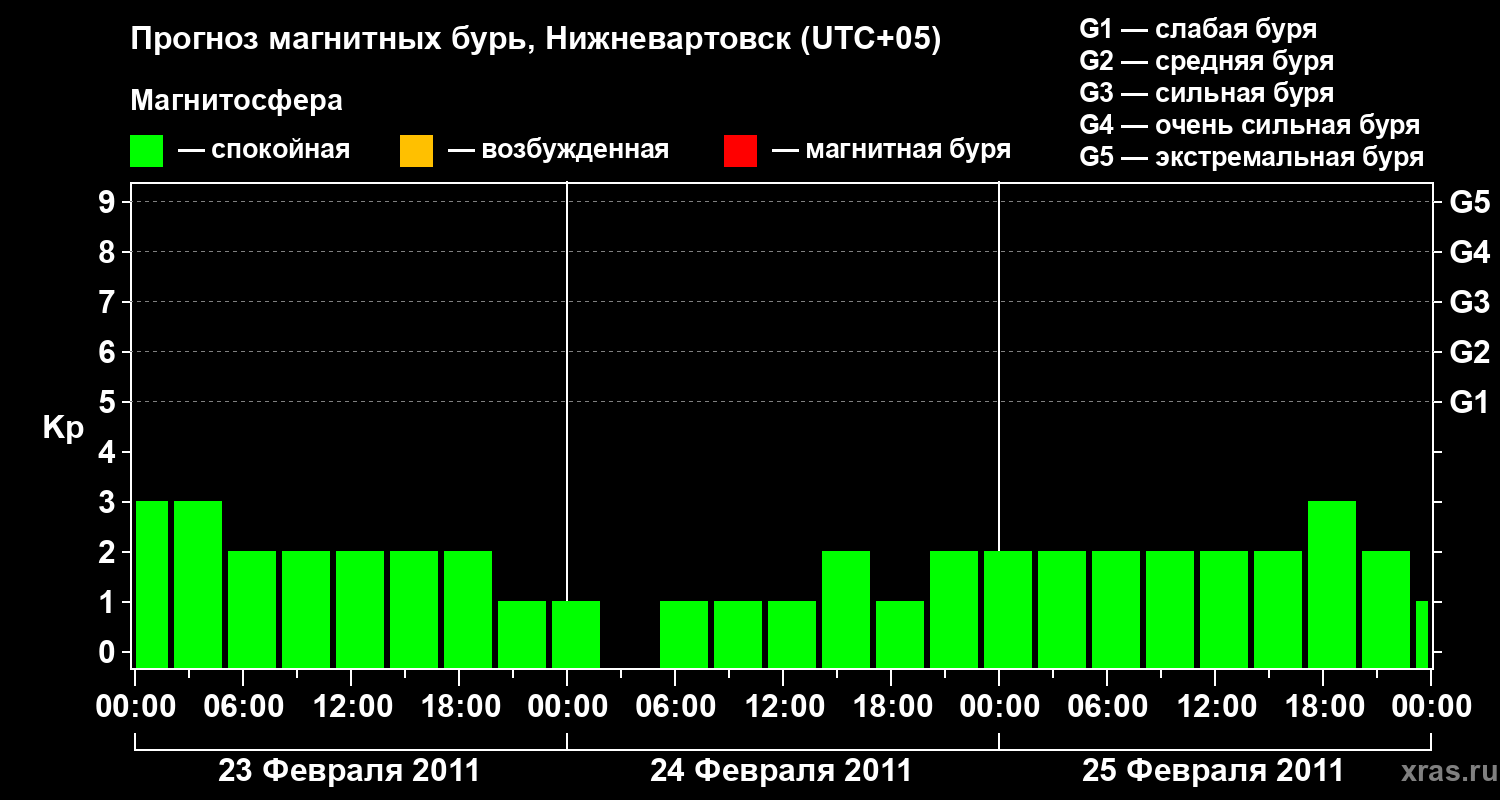 Прогноз магнитных бурь в Нижневартовске — 23 февраля 2011 года