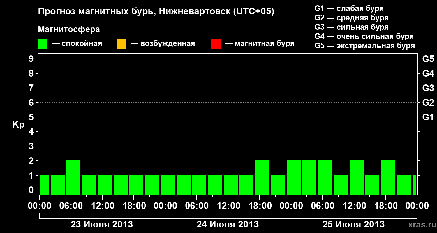 Прогноз магнитных бурь в Нижневартовске — 23 июля 2013 года