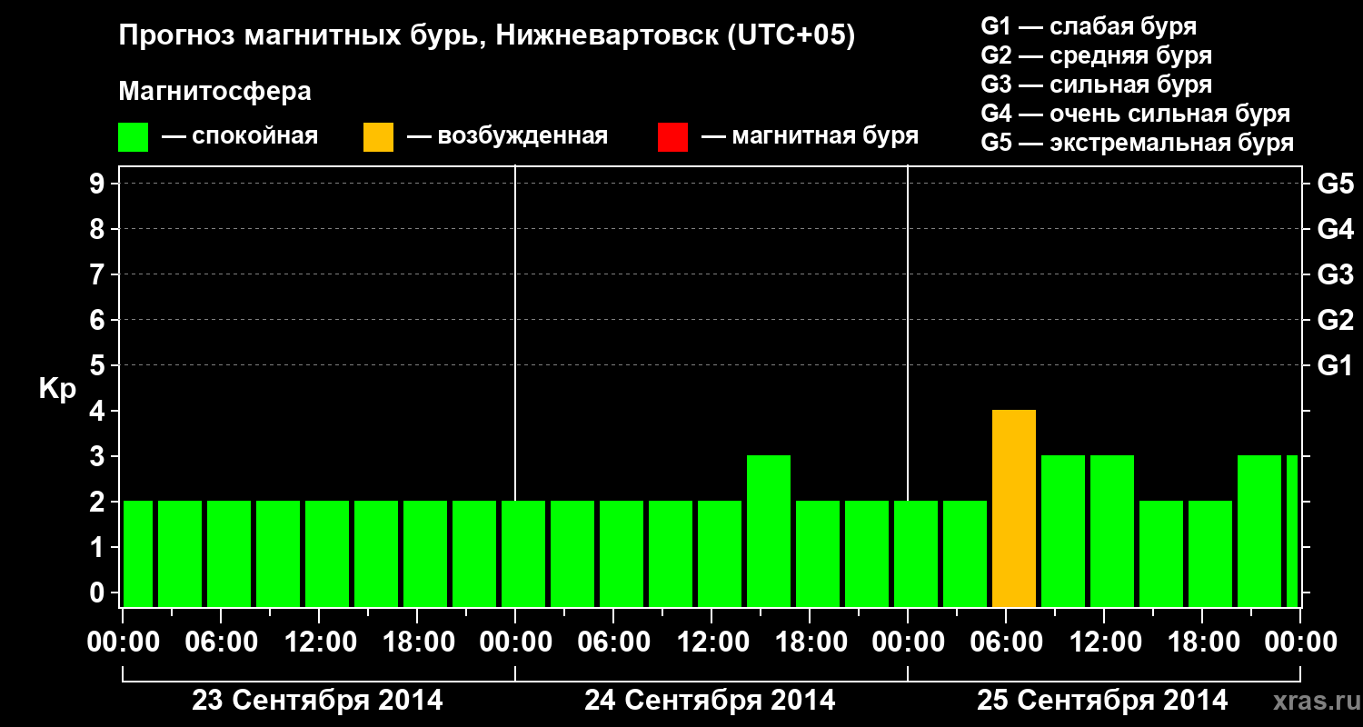 Прогноз магнитных бурь в Нижневартовске на 23 сентября 2014 года