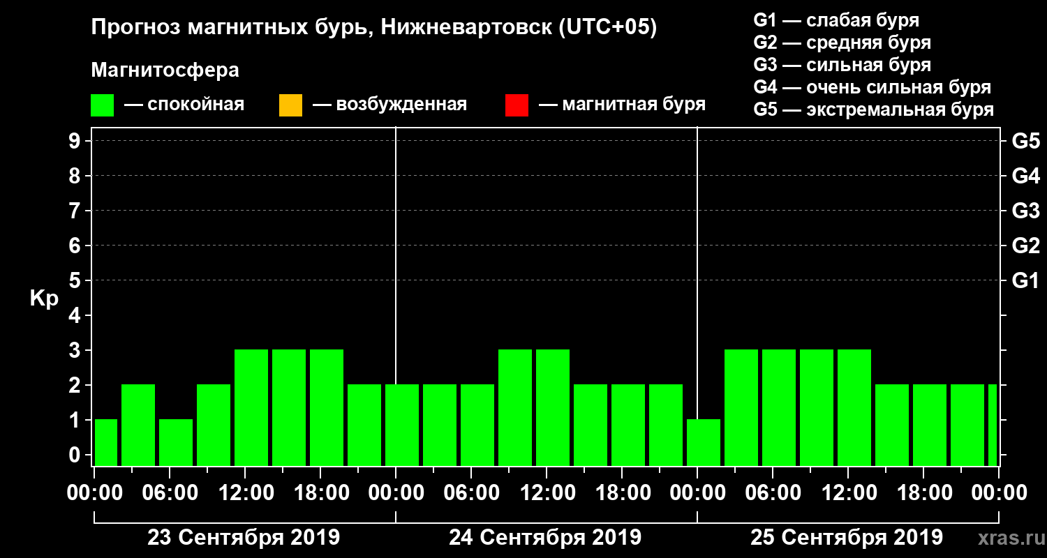 Прогноз магнитных бурь в Нижневартовске на 23 сентября 2019 года