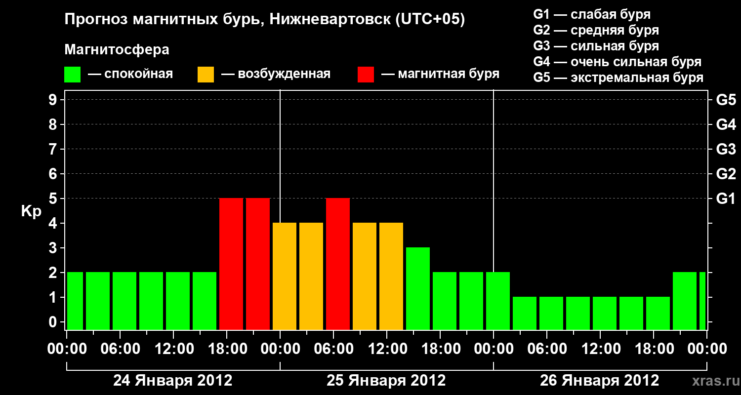 Прогноз магнитных бурь в Нижневартовске — 24 января 2012 года