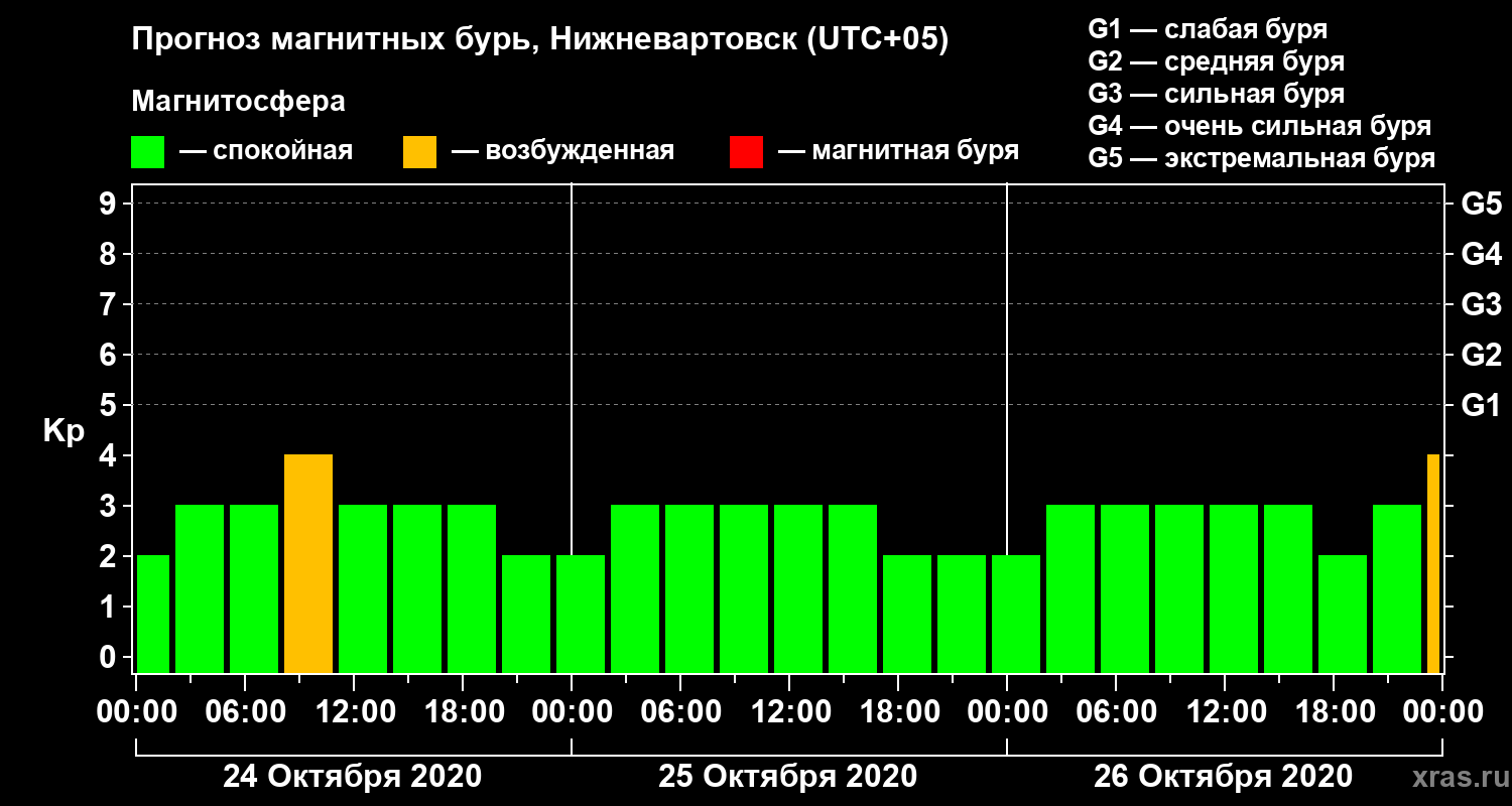 Прогноз магнитных бурь в Нижневартовске — 24 октября 2020 года