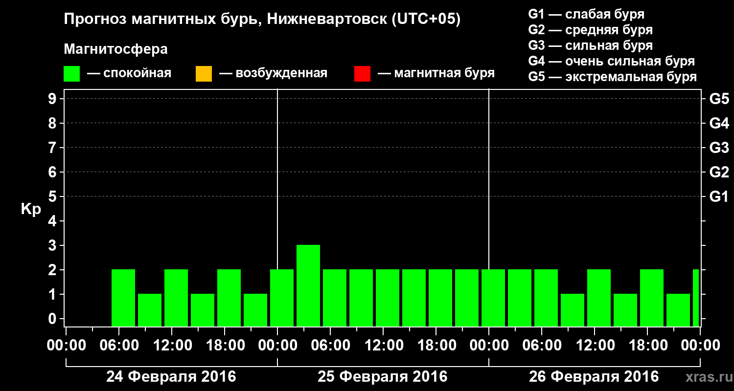 Прогноз магнитных бурь в Нижневартовске на 24 февраля 2016 года