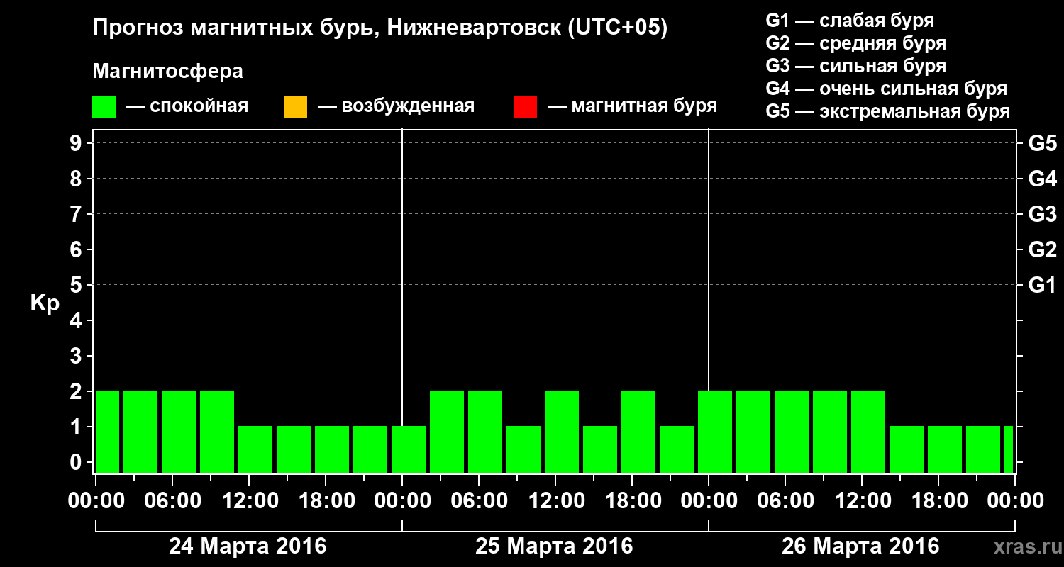Прогноз магнитных бурь в Нижневартовске — 24 марта 2016 года