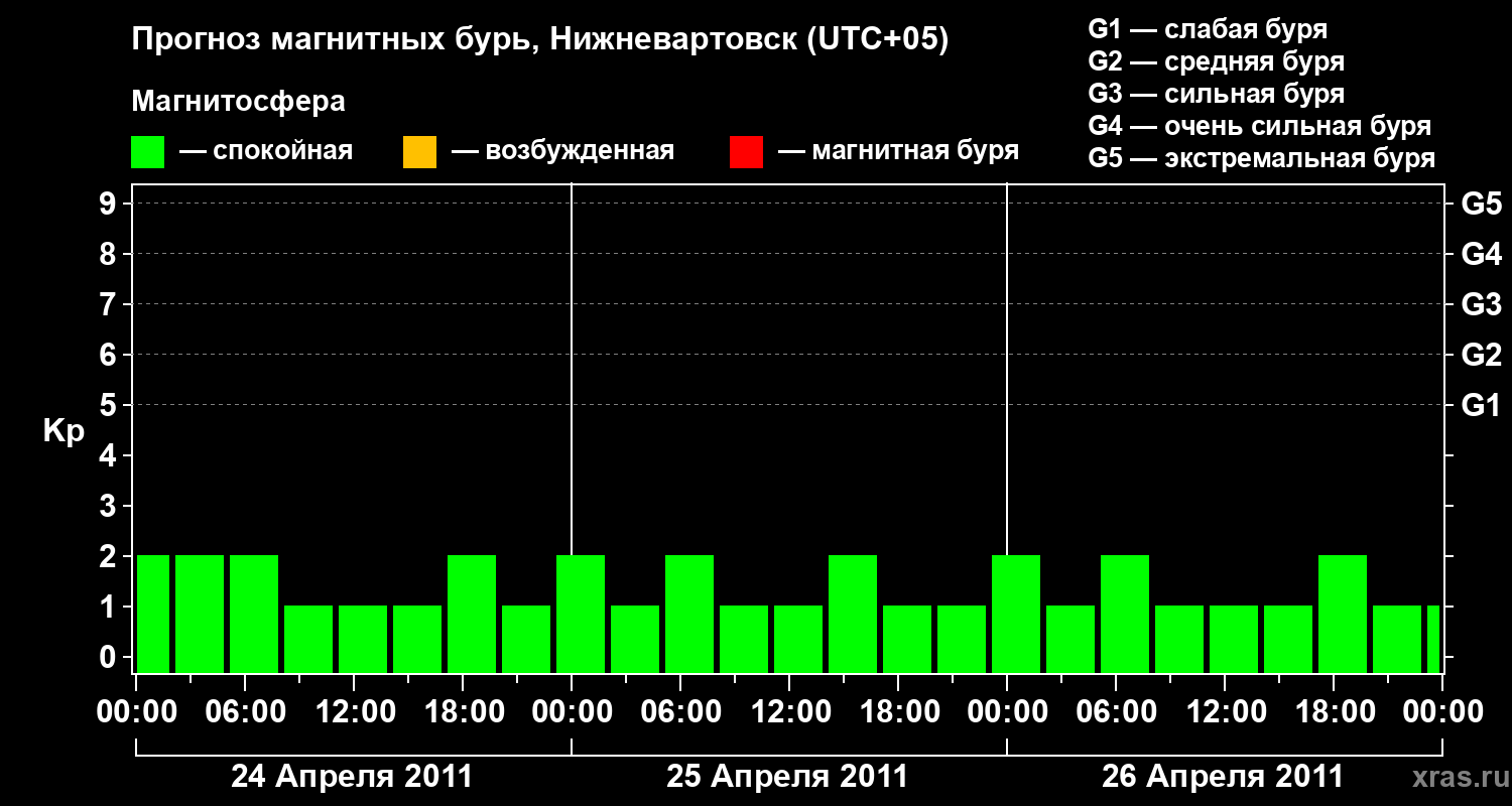Прогноз магнитных бурь в Нижневартовске — 24 апреля 2011 года