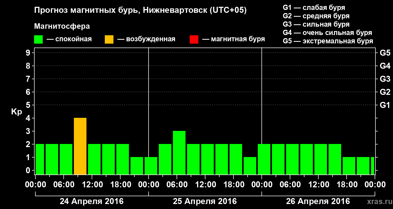Прогноз магнитных бурь в Нижневартовске — 24 апреля 2016 года
