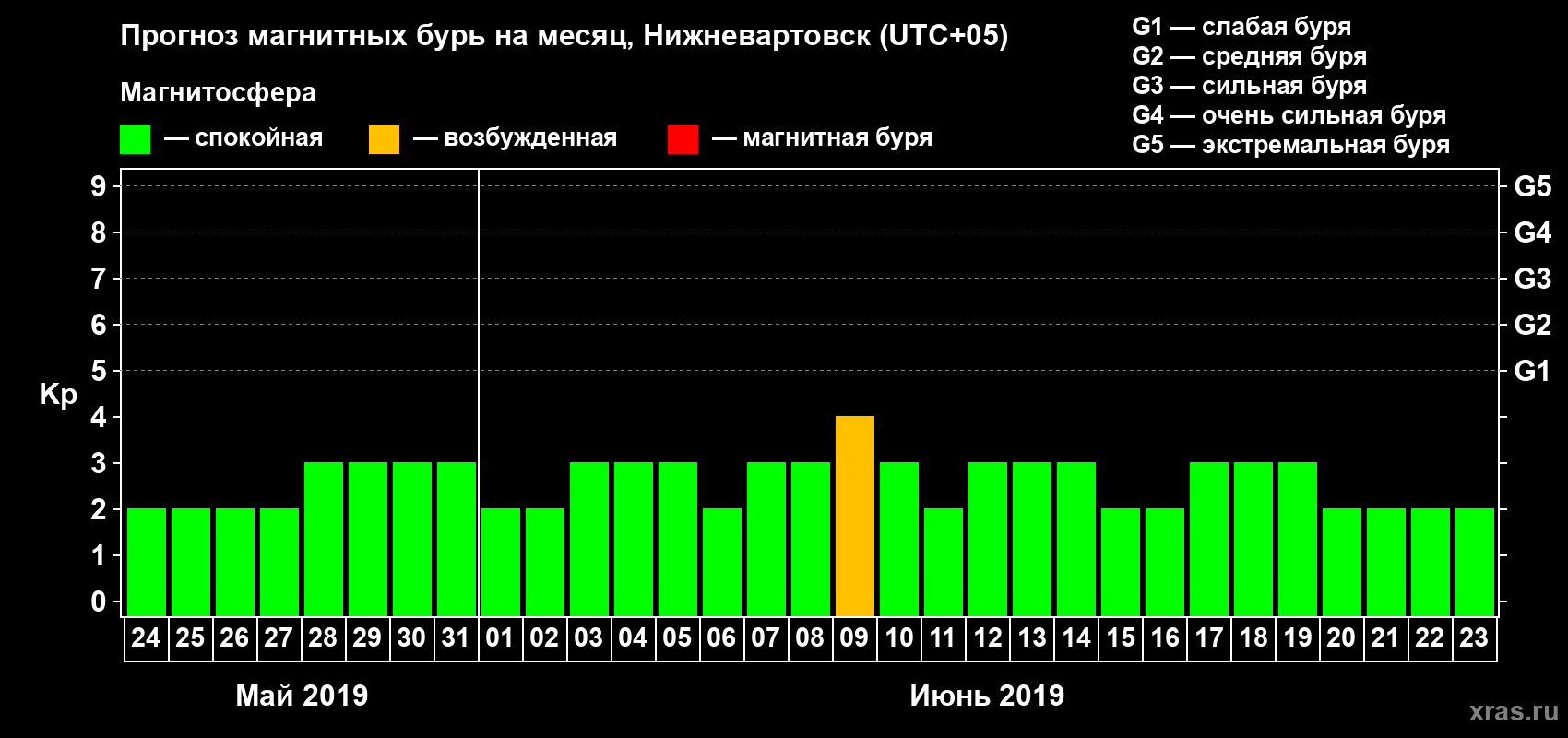 Прогноз магнитных бурь в Нижневартовске — 24 мая 2019 года