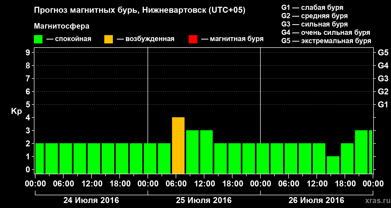 Прогноз магнитных бурь в Нижневартовске — 24 июля 2016 года