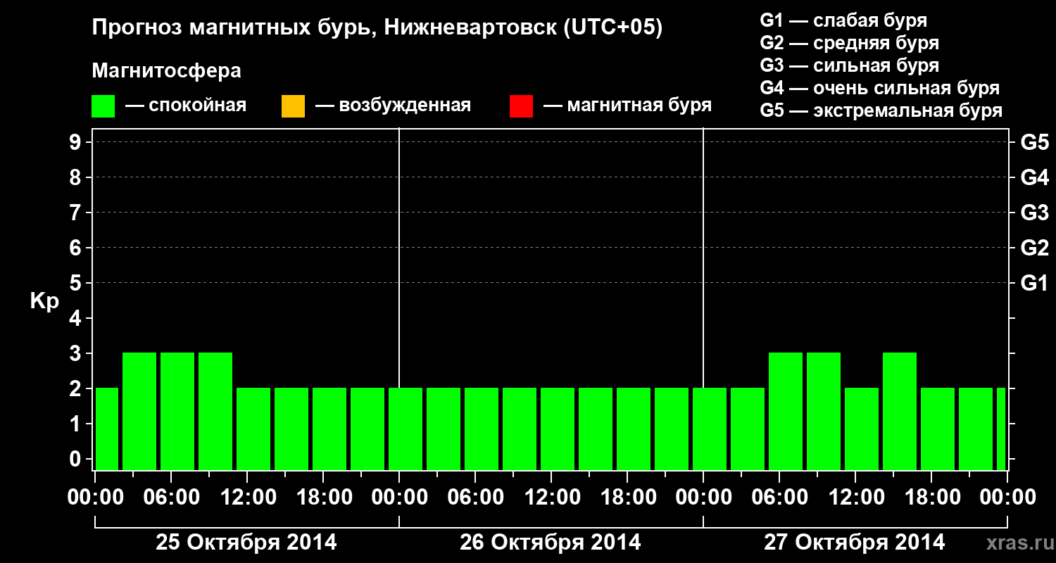 Прогноз магнитных бурь в Нижневартовске на 25 октября 2014 года
